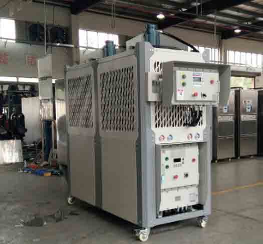 5、風(fēng)冷式防爆工業(yè)冷凍機(jī)組,通過風(fēng)扇以空氣為冷凝方式的控溫設(shè)備,有箱式和螺桿式;